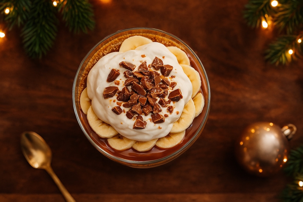 Banoffee trifle on täydellinen silloin, kun haluat juhlapöytään jotain näyttävää, mutta et jaksa uunia tai monimutkaisia valmistusvaiheita.