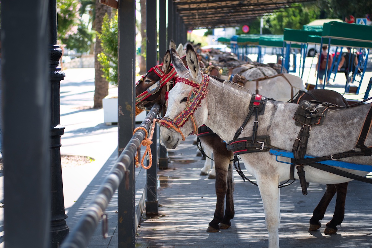 Toinen vaihtoehto paikkojen kiertämiseen on Mijasin kuuluisat aasitaksit, jotka odottelevat matkustajia Plaza Virgen de la Peña -aukion laidan katoksessa. Aasin selässä voi ratsastaa 15 eurolla ja kahden hengen kärryissä 20 eurolla.