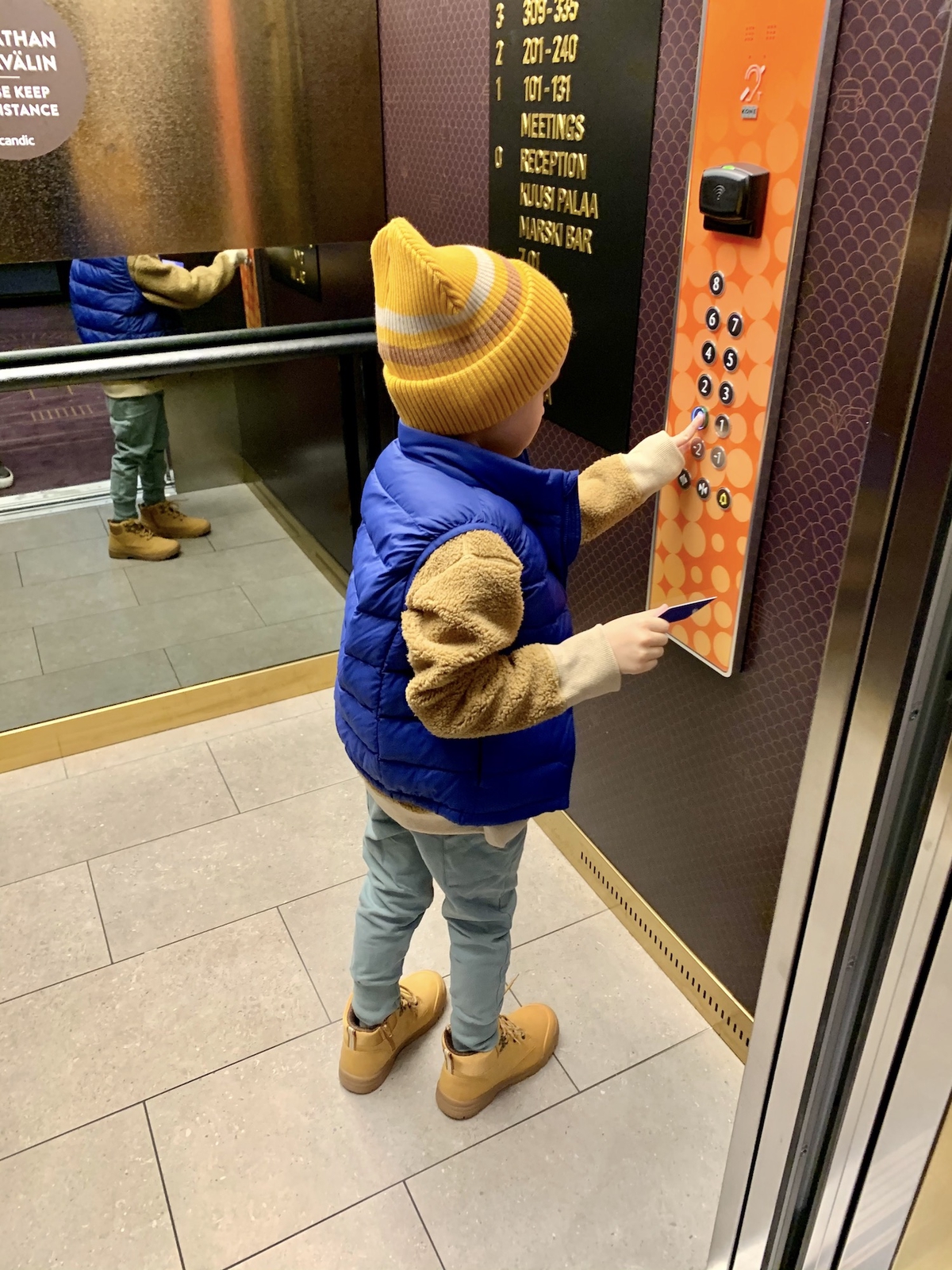 Etukäteen hotellimajoituksessa jännitin eniten sitä, miten saamme eskarilaisen vaatehuollon onnistumaan kesken sotkuisimman kuravaatekauden. Toinen asia, jota pohdin, oli ronkelin jälkikasvumme ruokahuolto.