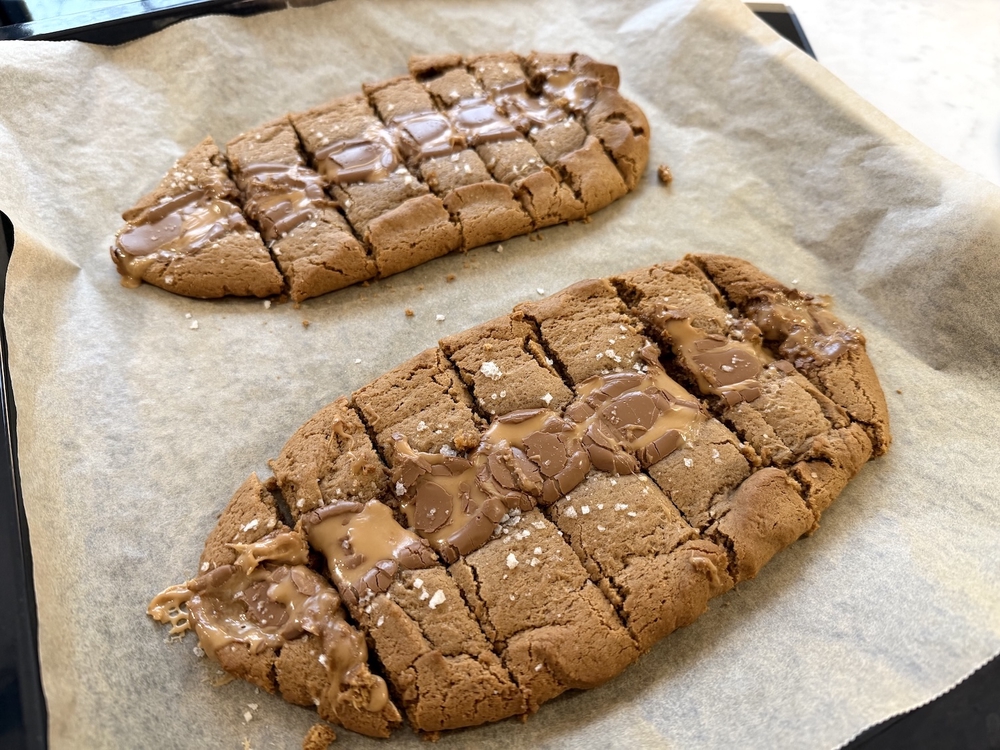 Paista 8–12 minuuttia, kunnes Dumle-palat ovat kauniin kullanruskeita, mutta sisältä vielä pehmeitä. Anna jäähtyä 5–10 minuuttia, jotta karamelli jähmettyy.